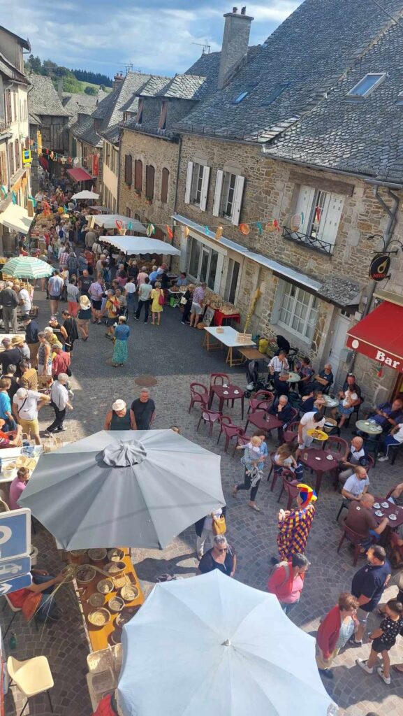 * Place de Peyre : stand de l’association « Montsalvy Fête des Paniers », point de vente, informations, atelier de vannerie, maquillage, caricaturiste