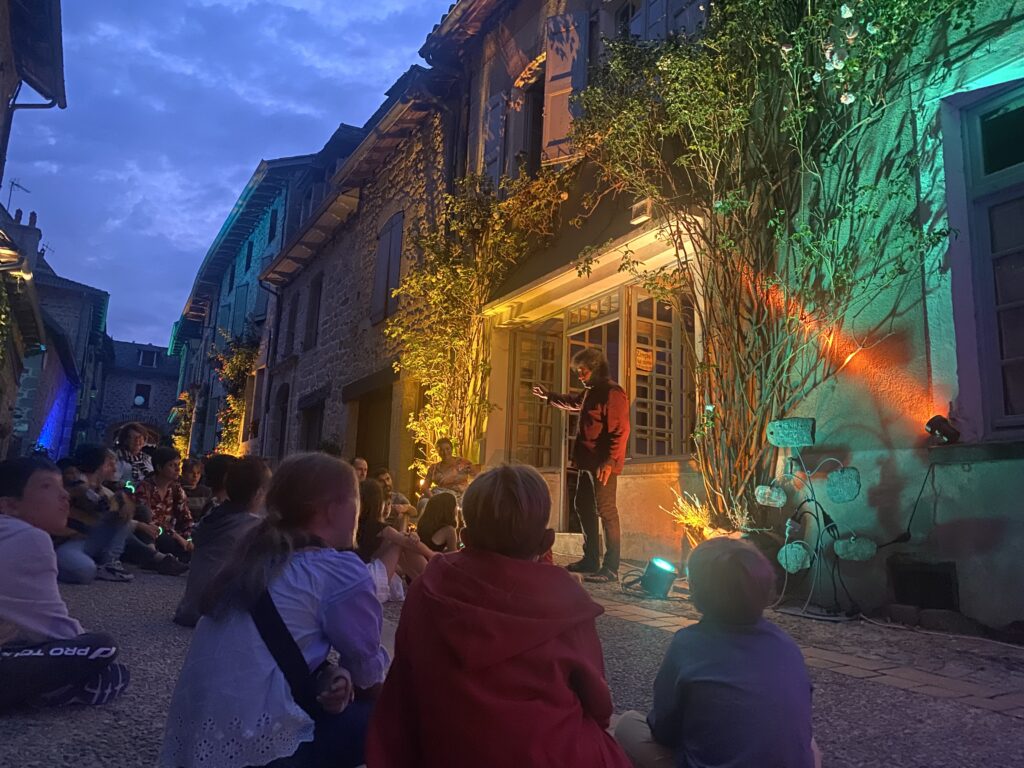 Spectacle déambulatoire à la nuit tombée dans les ruelles de la Petite Cité de caractère® mêlant conte, musique et mise en lumière du village.