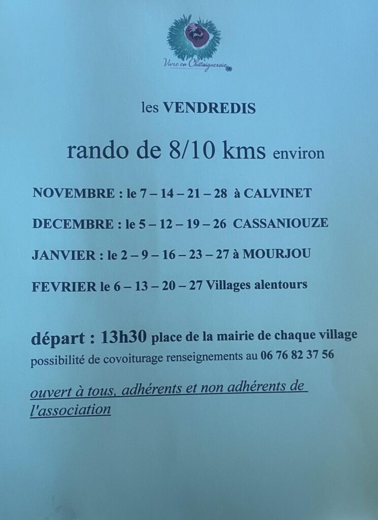 Et aussi à Mourjou les 2, 9, 16, 23 et 27 janvier, puis dans les villages alentour les 6, 13, 20 et 27 février, toujours à la même heure.
