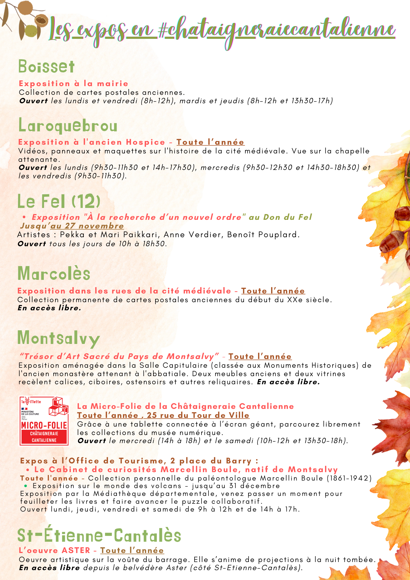 Profitez d’une sortie culturelle & artistique et visitez les expositions en Châtaigneraie Cantalienne !