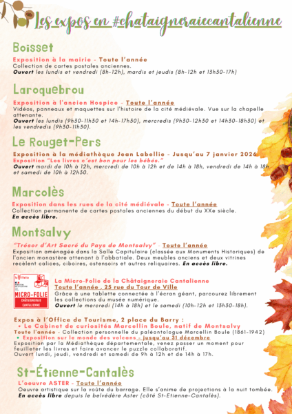 Profitez d’une sortie culturelle & artistique et visitez les expositions en Châtaigneraie Cantalienne !