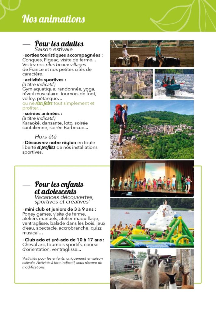 Un village classé 4 étoiles, labelisé excellence en restauration, développement durable, lauréat du Trophée National 2019 AGRILOCAL, témoignant de l’engagement de ses équipes dans une restauration de qualité en circuit court. Pendant l’été, des animations adultes encadrées des clubs enfants à partir de 3 ans, l’accès en toute liberté à la piscine couverte et chauffée, l’espace bien être (sauna, jacuzzi, hammam), un parcours de santé sur site, des soirées à thème (cabaret, café théâtre, kermesse, karaoké, dansante, jeux…) et un environnement touristique riche en monuments et villages typiques : Puy Mary, Figeac, Conques sur les chemins de Saint-Jacques-de-Compostelle, Rocamadour, Marcolès, Laroquebrou, Montsalvy, Maurs…