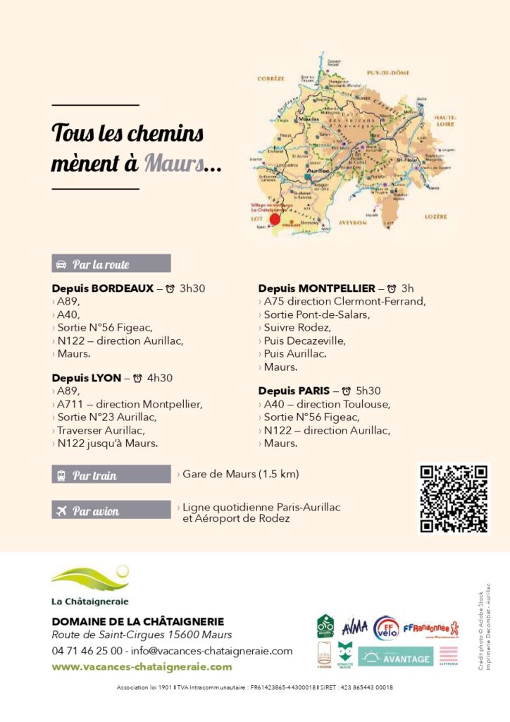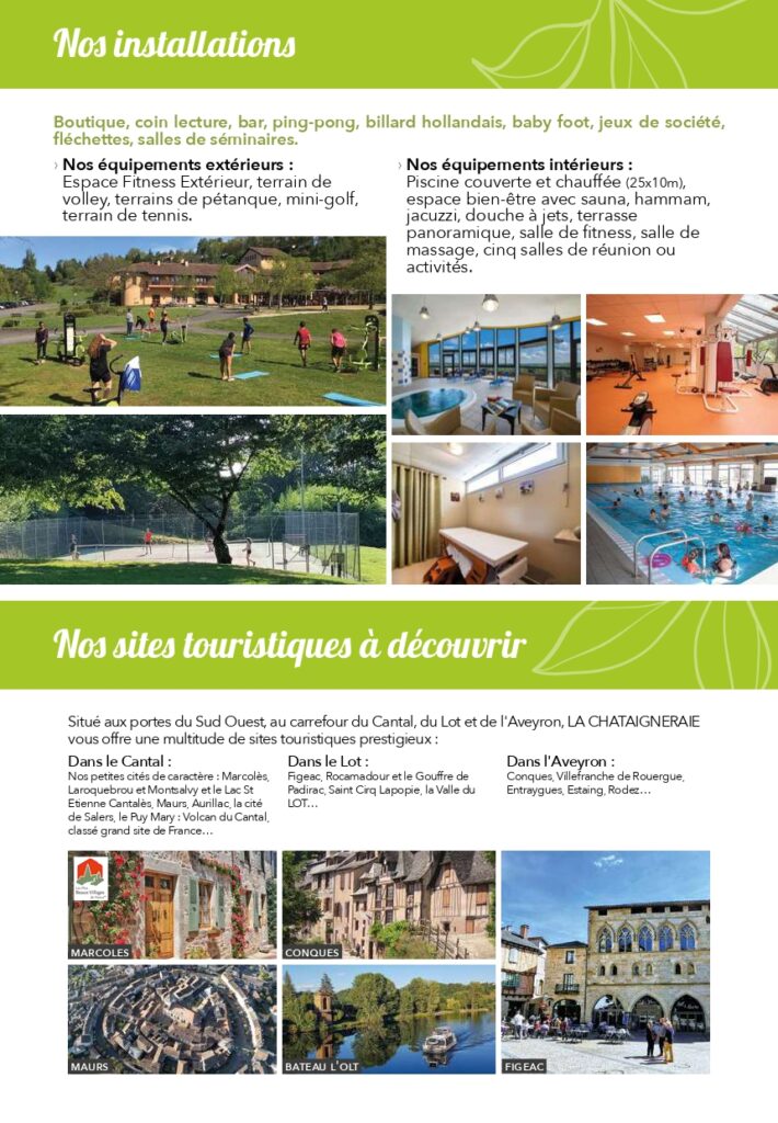 In the South of Massif Central, « Domaine de La Châtaigneraie » welcomes you to Maurs. A 4-star rated village, labelled with excellence in catering, sustainable development, winner of the 2019 AGRILOCAL National Trophy, testifying to the commitment of its teams to quality catering in a short circuit. During the summer, supervised adult activities, children’s clubs from age 3, free access to the covered and heated swimming pool, the wellness area (sauna, jacuzzi, hammam), an on-site fitness trail, themed evenings (cabaret, café-theatre, kermesse, karaoke, dancing, games, etc.) and a tourist environment rich in monuments and typical villages : Puy Mary, Figeac, Conques sur les chemins de St Jacques de Compostelle, Rocamadour, Marcolès, Laroquebrou, Montsalvy, Maurs…