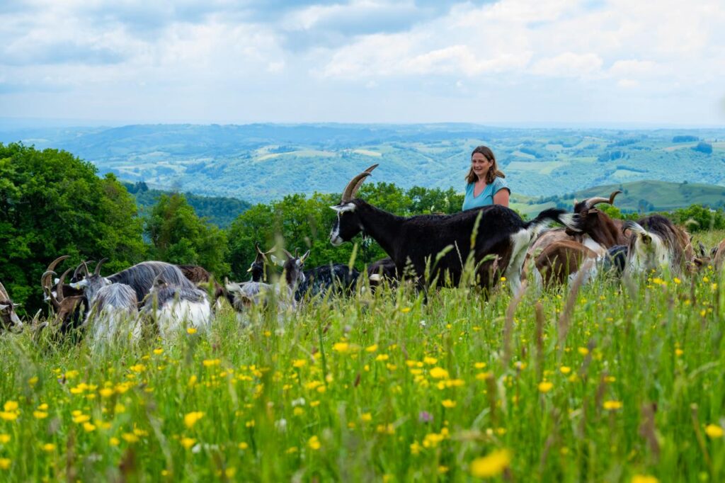 Daarnaast houd ik ongeveer dertig geiten in de open lucht, voornamelijk van het ras Massif Central, volgens de principes van de biologische landbouw. Hun melk wordt verwerkt tot boerenyoghurt en natuurlijke zeep op basis van geitenmelk.